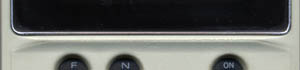 In operation, the calculator acts almost identically to the Anita 811, with just a few differences (that I can identify). Firstly, there is no ninth digit for minus and error conditions. Instead there are two LEDs at the upper right and upper left of the display area, which illuminate for these conditions. They are labelled, which you should just be able to make out, but black on black isn't terribly obvious. Secondly, using Gerhard Wenzel's classification tree (see here for more details), this calculator gives '54' to the input "2 * 3 * = = ", like the Rockwell calculators, rather than the '24' of the Anita and Triumph-Adler calculators. Lastly, the switch labels are different from the 811 and Triumph-Adler calculators. For the 'rounding' switch '2' is used for two decimal places, with 'F' (full?) for normal display. The memory switch uses 'A' (like the TA 81) for 'accumulate' and 'N' (normal?) to turn it off. The on/off simply uses English instead of symbols. The key layout is somewhat strange, with the equals key in a most awkward place (to more modern sensibilities), but like the 811, the equals key does not have the prominence that it has in later calculators.