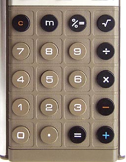 This Anita 831 is just a small incremental step from the earlier Anita 810 and 811 calculators, with an added square root function the most obvious addition. It is styled in the same manner as the 811 and retains 3 switches, the left most two of which have the same functionality as the 811 (power and rounding to 2 places). The memory switch has gone, and is replaced with a circed '2'. This places the calculator into automatic 2 decimal point mode. With this switch activated, typing the number keys will 'left shift' them through a forced two decimal places, allowing accounts to be totalled more easily. At any time it can be overridden by pressing the decimal place button, when the decimal place snaps back to the rightmost position. I don't know of any other calculator with this feature, but I can see why it hasn't really persisted.