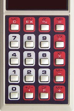 This is a Rockwell 30R repackaged for the American chain store chain 'Radio Shack', owned by Tandy. It is the sister calculator to the EC-220, which is an 8R equivalent. Unlike the more staid House of Fraser or Sears and Roebuck variants, this calculator shouts 1970's design at you, with bold, even brash, colours. These calculators were only ever built in Mexico, with just a brief overlap with Sumlock Anita's existence. So why, I hear you ask, is it in the collection? Well firstly it is an equivalent of a model that was built in Portsmouth (the 30R), and secondly because I like it! The internal I.C. is labelled 7540 (week 40, 1975).