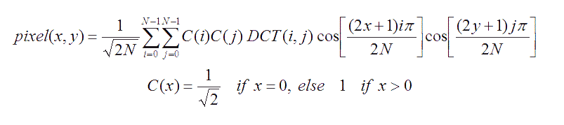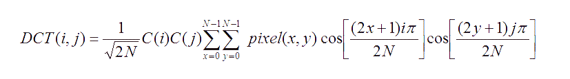- Transform the square into an 8 x 8 frequency oriented square using the "Discrete Cosine Transform"