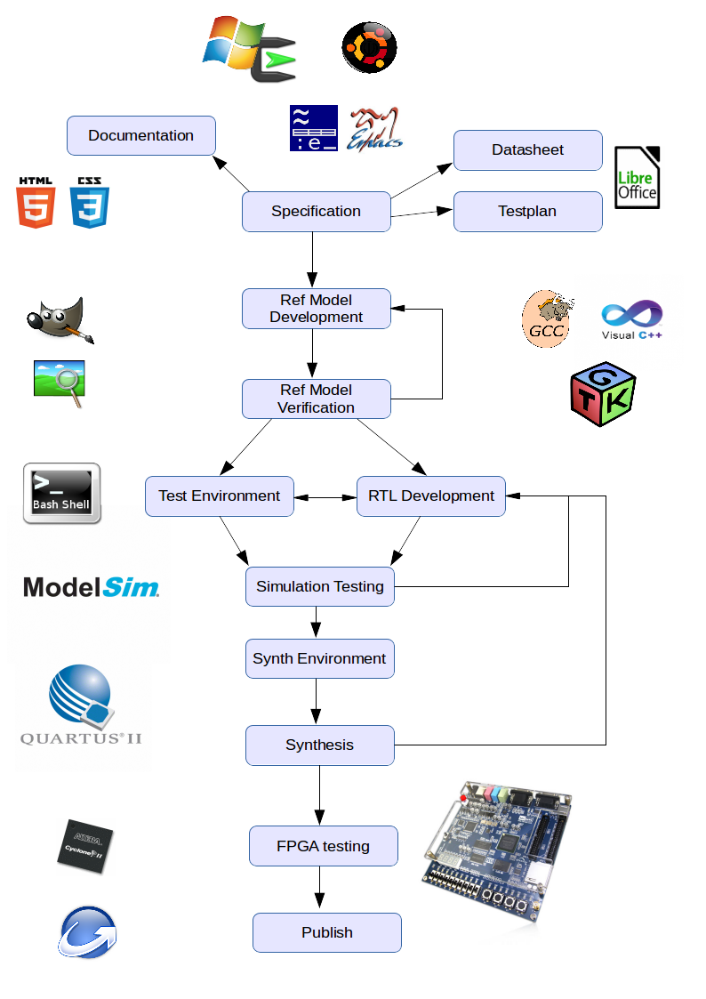 IP development using the minimum of outlay regarding CAD tools and test hardware, whilst covering