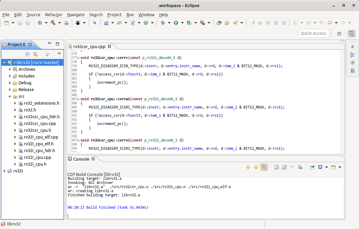 Also included is a derived class, rv32_csr, which implements the CSR instructions and manages
