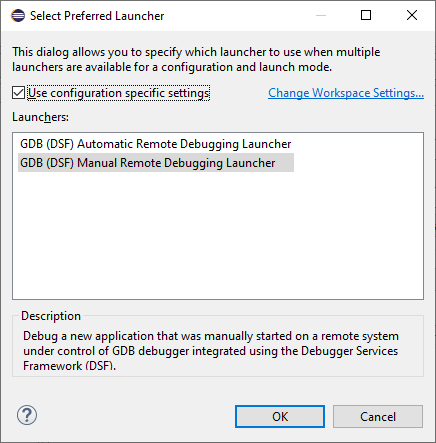 Remote Application. This needs a Launch mode of Debug, and a Post launch action of None. The resultant window should look something like the