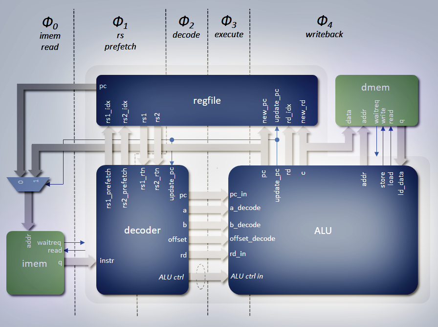 instruction memory (imem) and data memory (dmem). A future enhancement is to